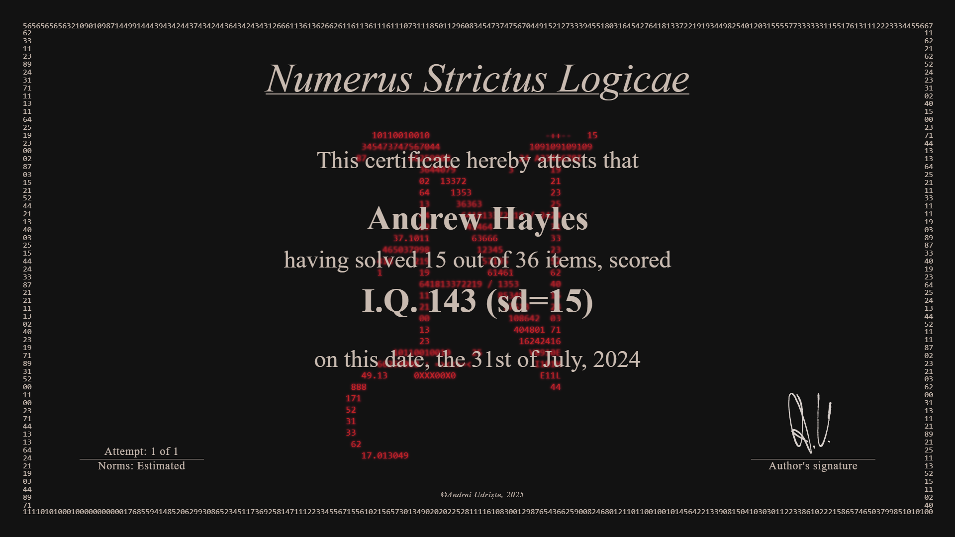 I’m Andrei Udriște, based in Romania. I design high-range reasoning assessments, underpinned by detailed statistical analysis.