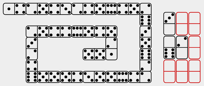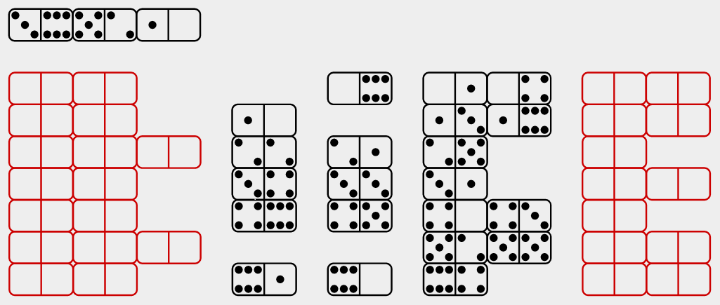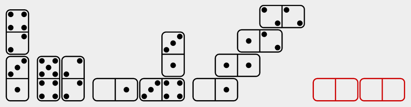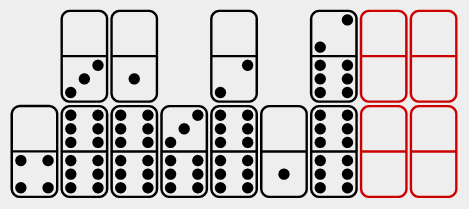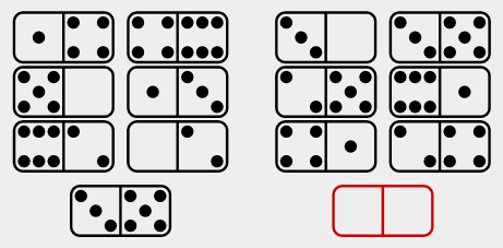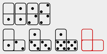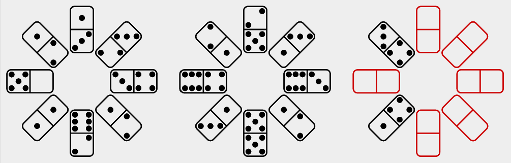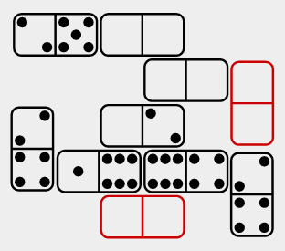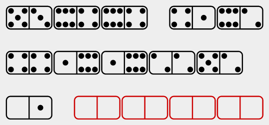 Dominator is a test of culture-fair numerical-spatial puzzles that use only the 28 classic domino tiles.